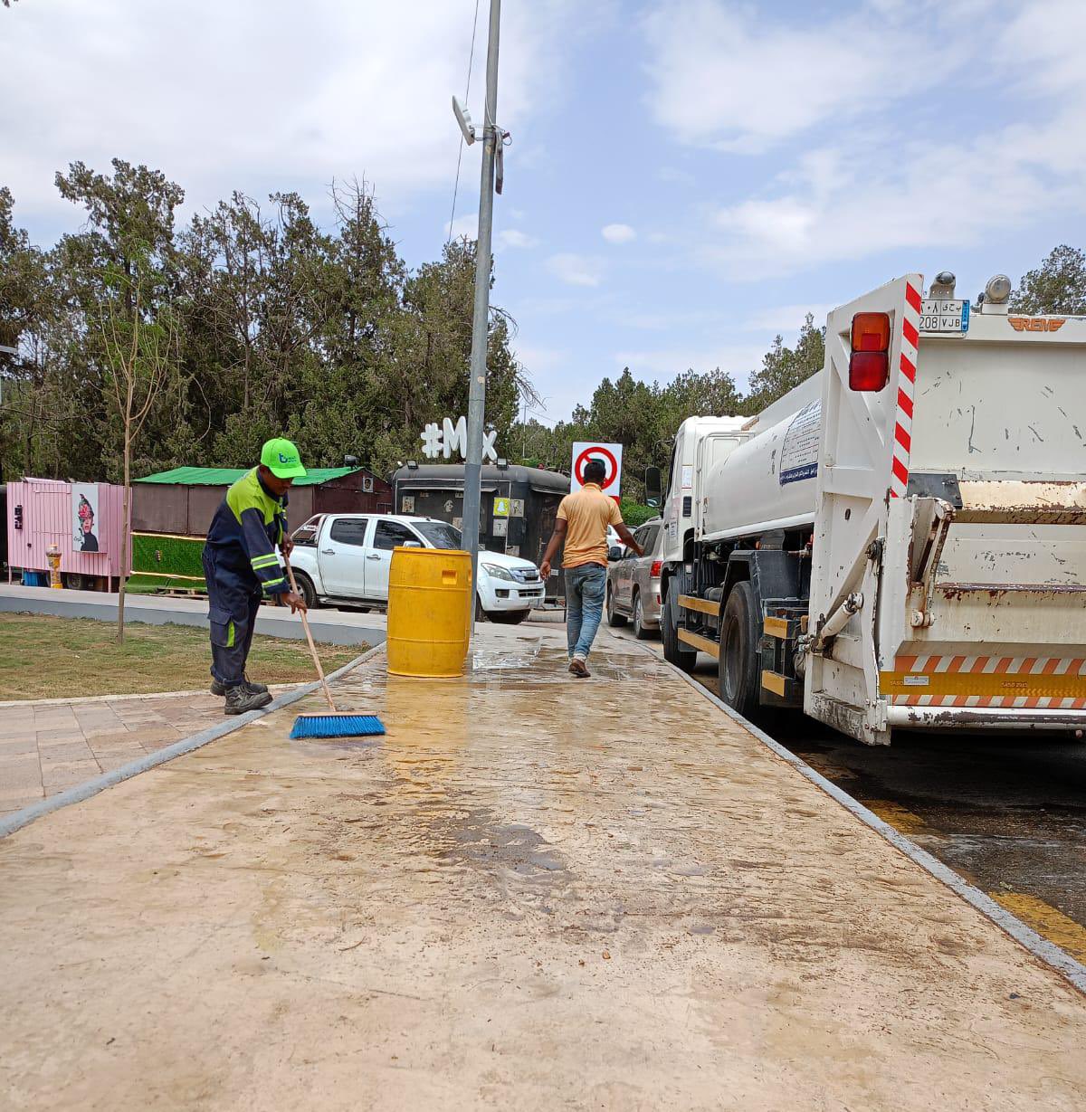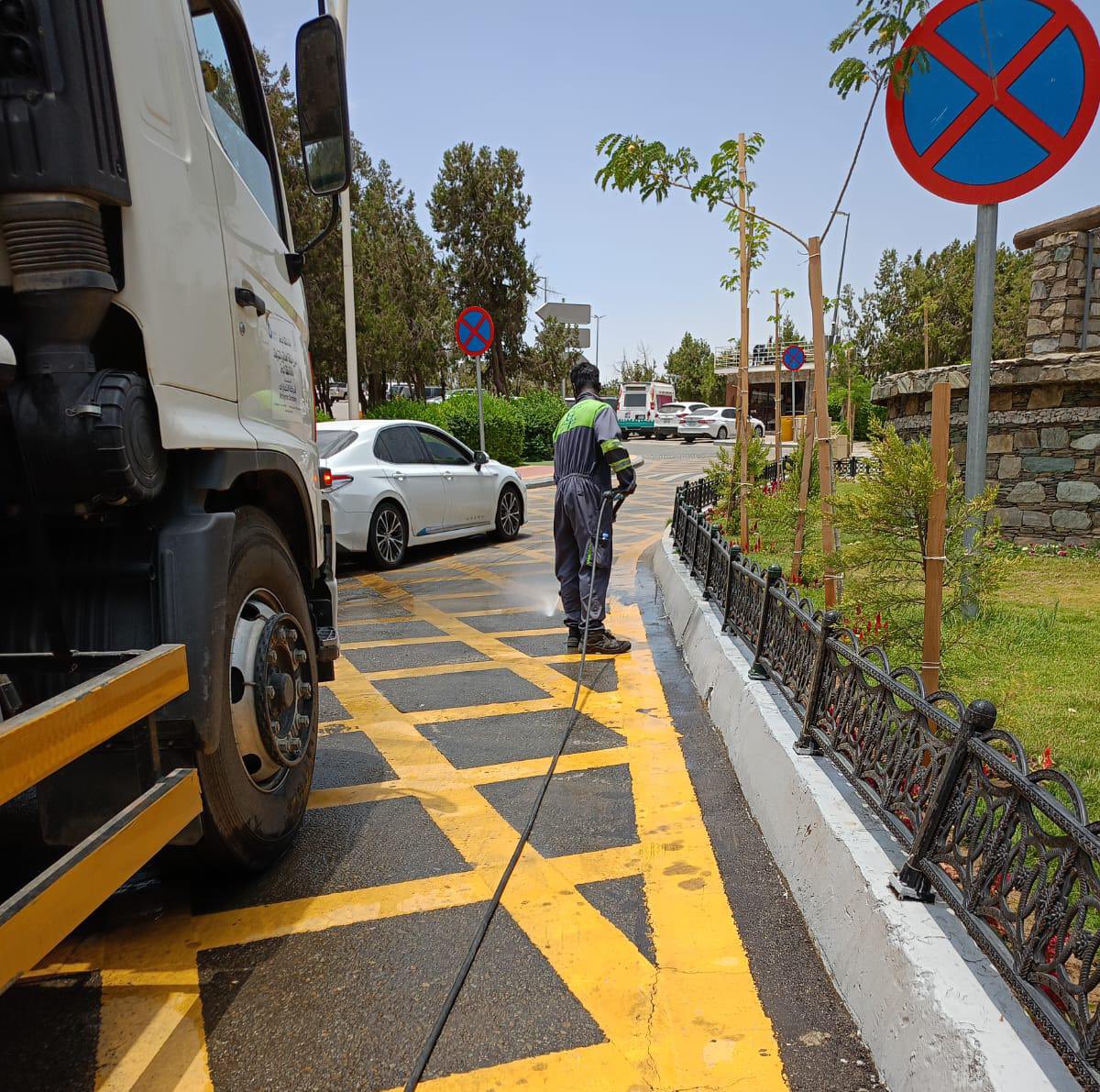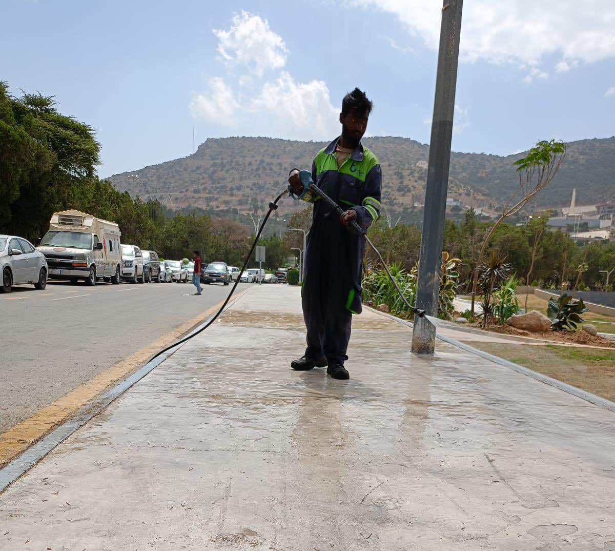 الإدارة العامة للنظافة والإصحاح البيئي تقوم بغسل وتنظيف وتعقيم ممرات المشاه في الحدائق والمنتزهات بمدينة الباحة