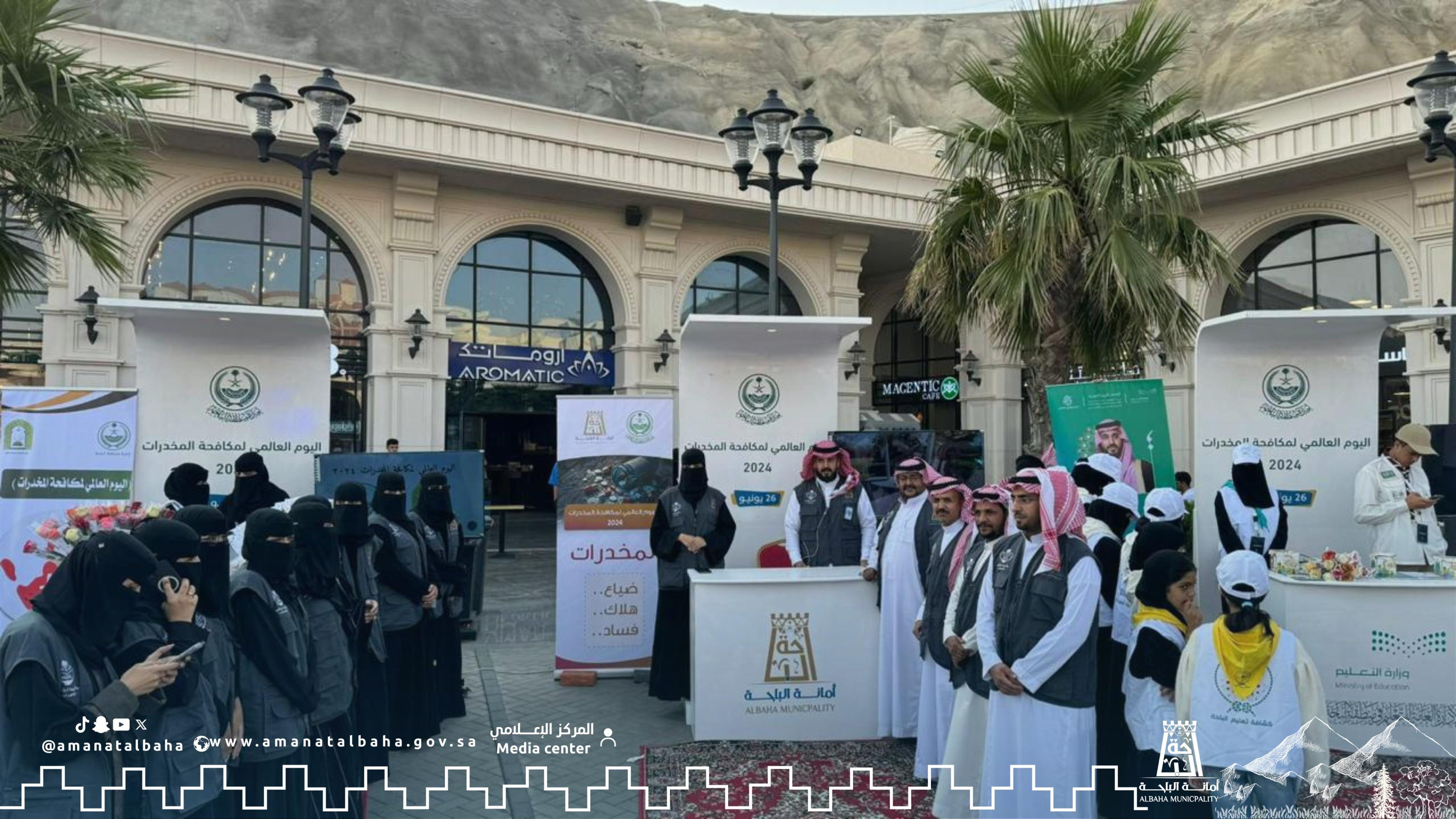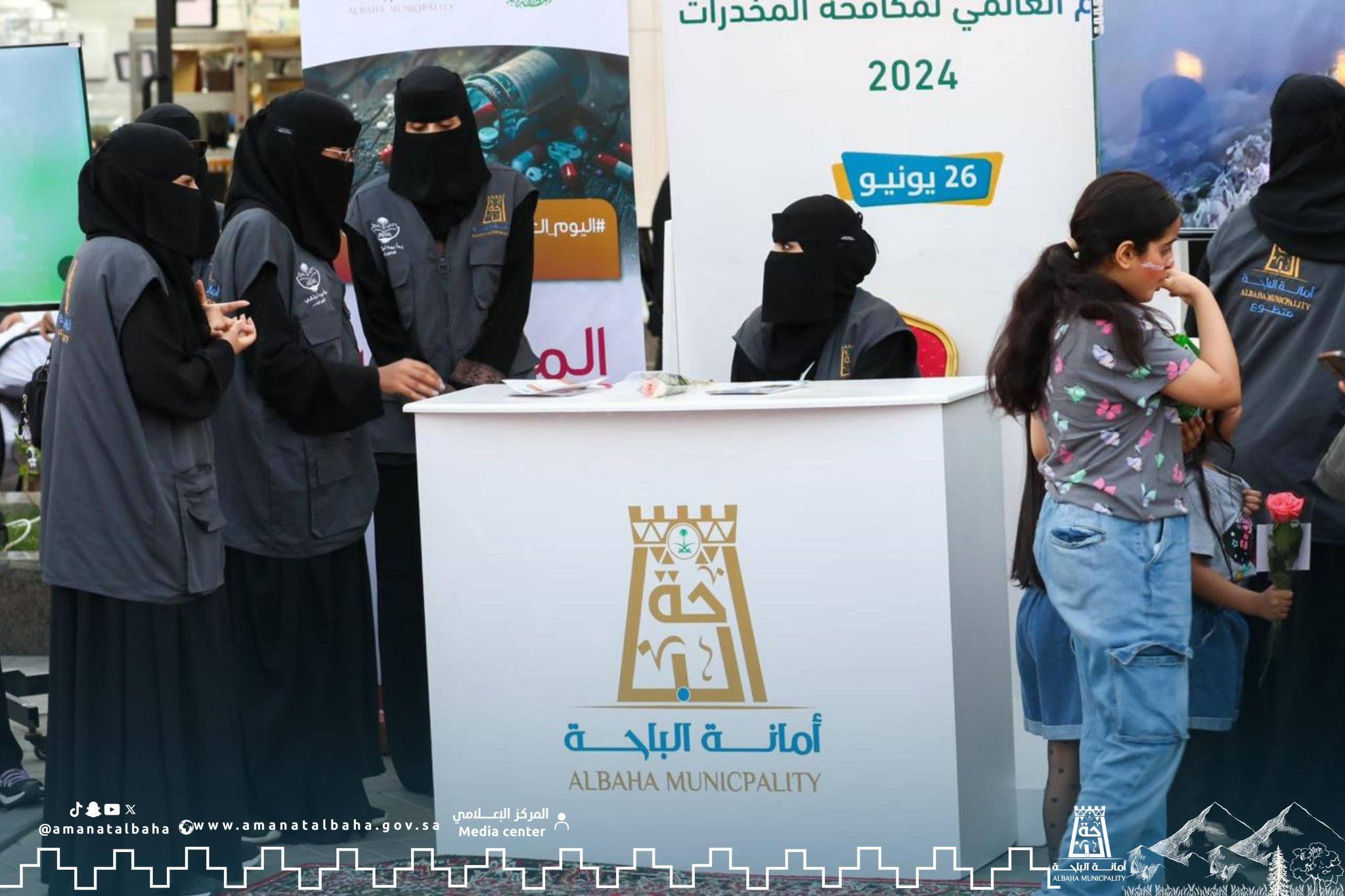 Al-Baha Municipality, represented by the Agency for Partnerships and Social Responsibility, organized awareness and educational initiatives on the occasion of the International Day against Drugs to raise awareness among individuals and society.